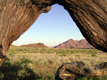 travel all the way to the extint volcano Brandberg where we reach the land of the